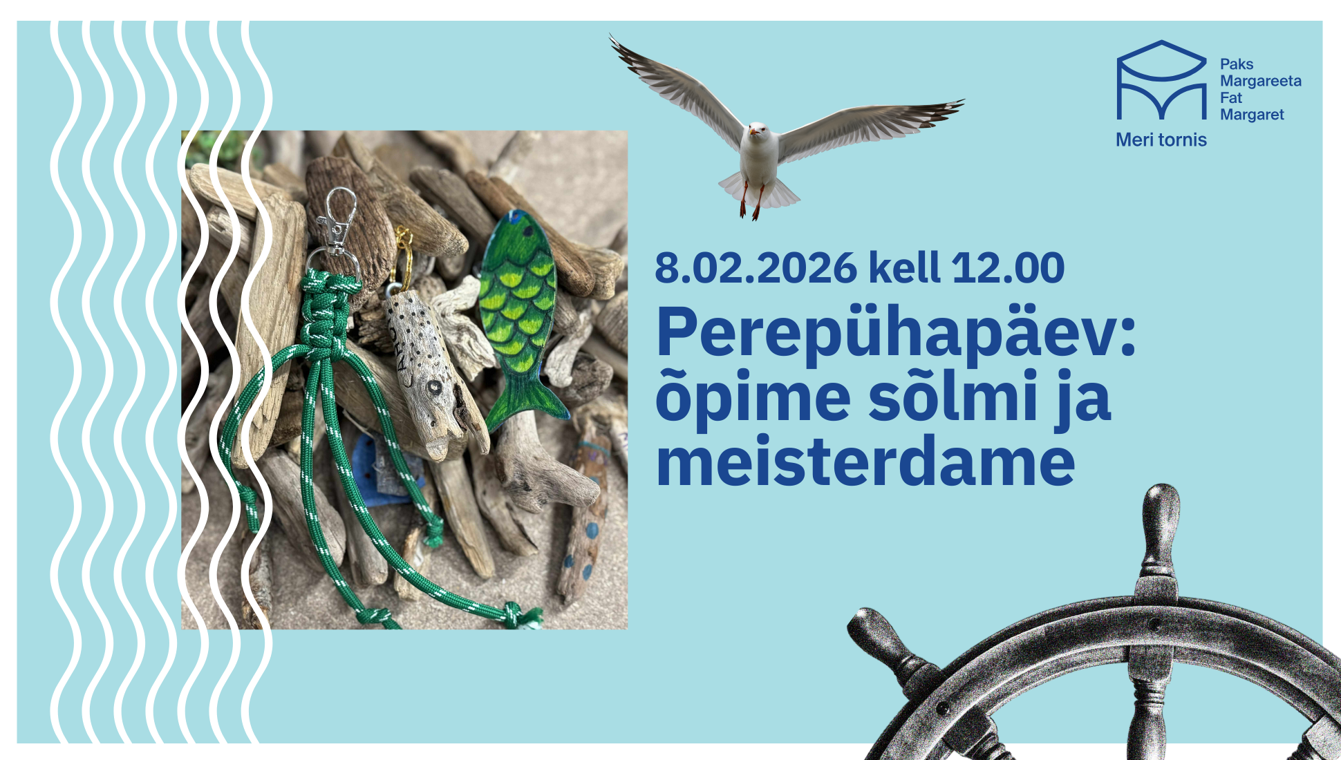 Perepühapäeval meisterdame uhutud puidust võtmehoidjaid ja õpime selgeks meremehesõlmed.